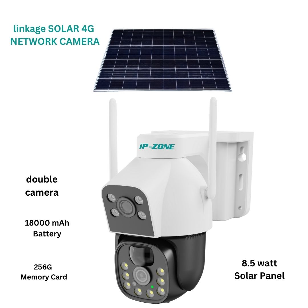 Battery and Solar Panel: Built-in 18000mAh rechargeable lithium battery with an 8.5W solar panel for continuous operation.